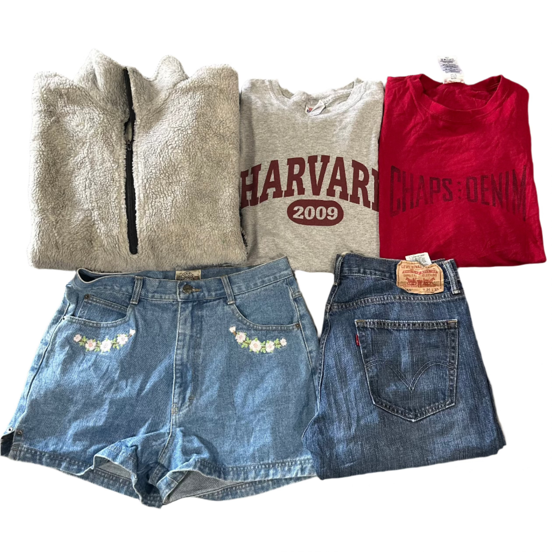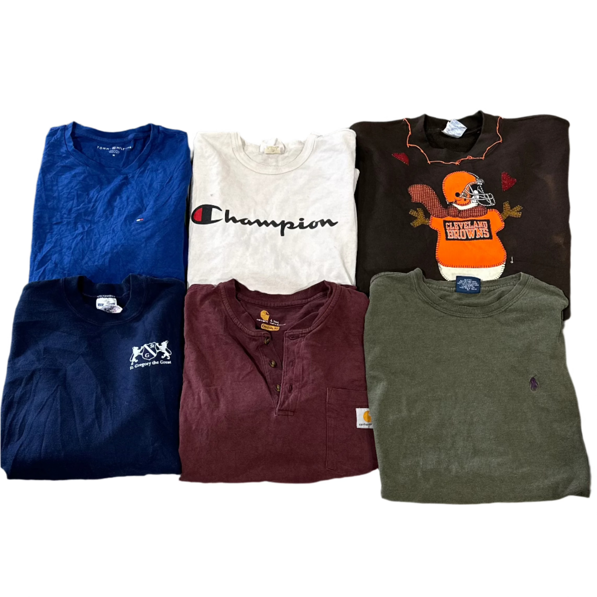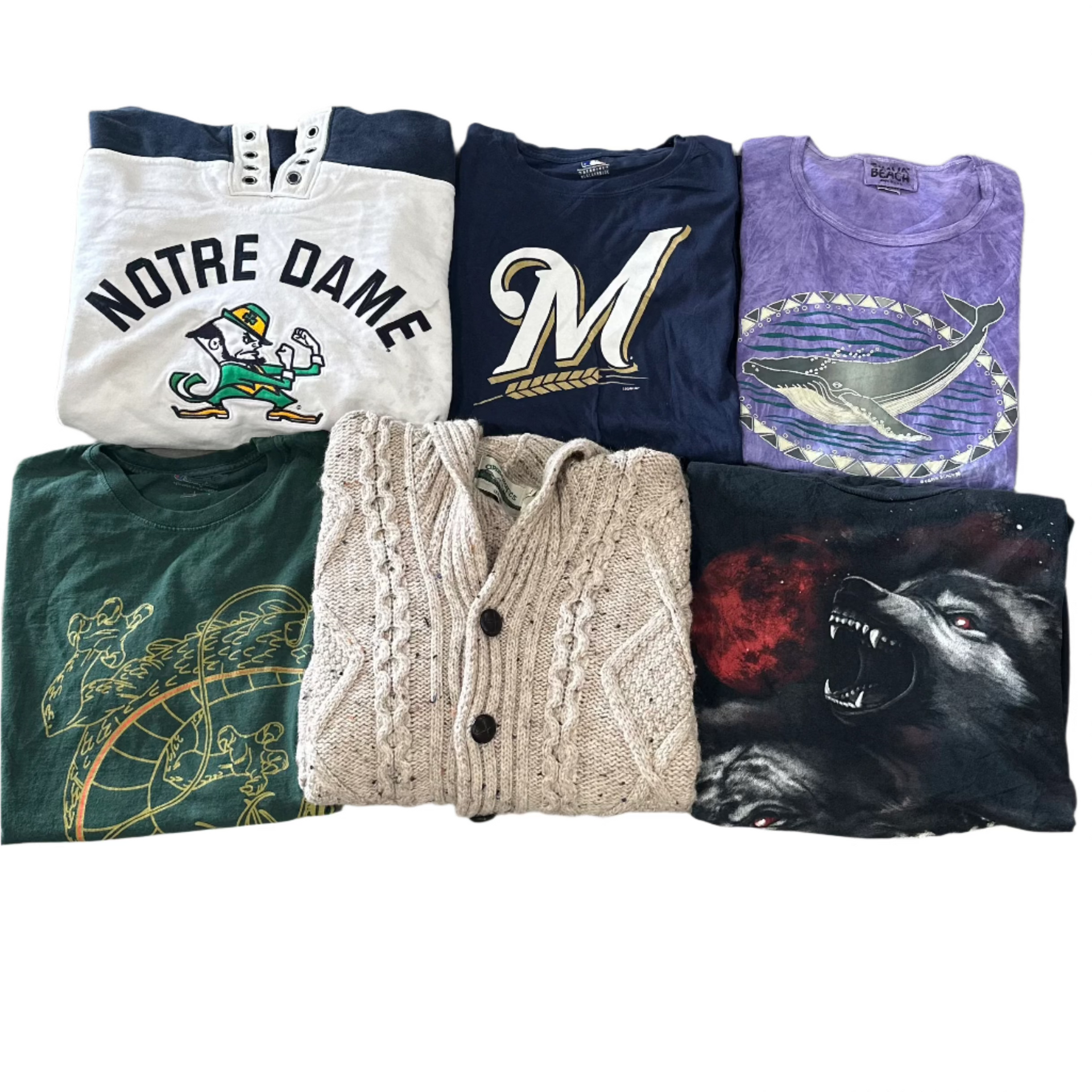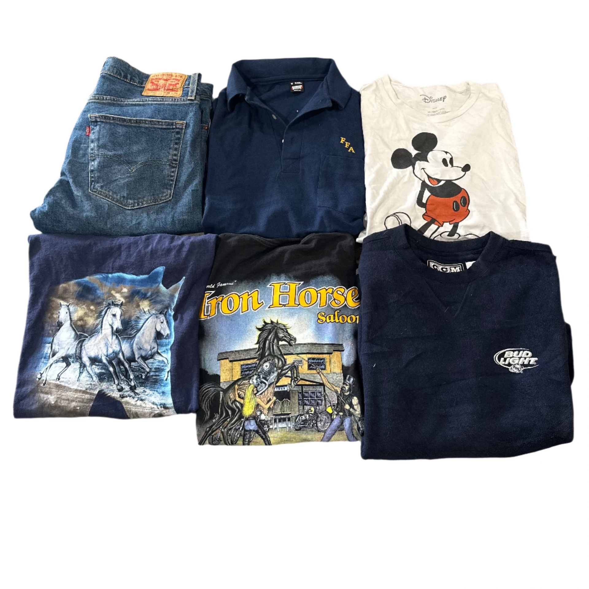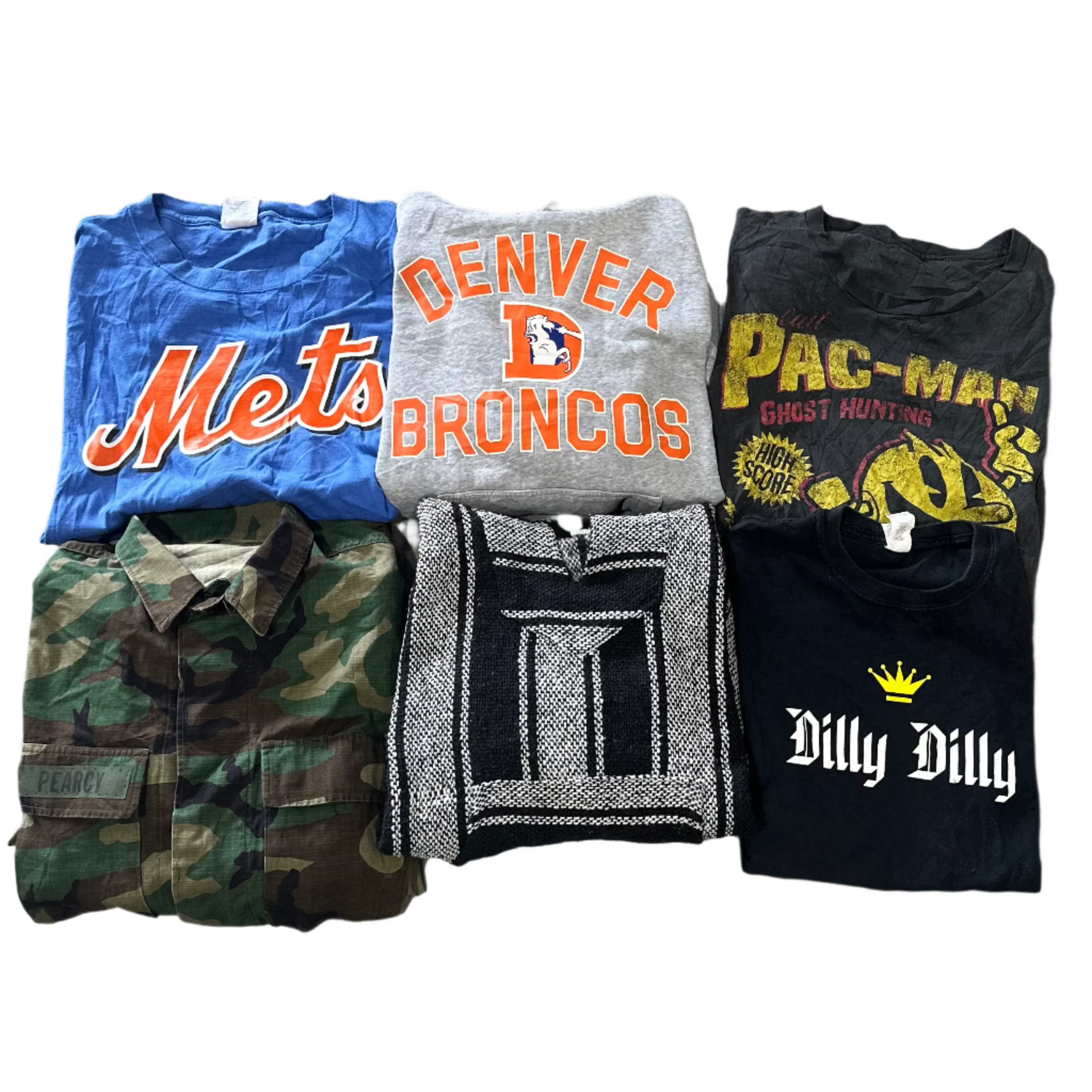 Expect to find trending items such as: Pro Sports, College, Branded, Cartoon, Vintage Graphic, Levi's, and more! This mix includes NFL, NHL, MLB, and NBA sports team tees, American college t-shirts, and university t-shirts in various brands and styles. Then there are the big mainstream fashion brands that have been crafting our style trends for generations, including Polo, Tommy Hilfiger, North Face, Nautica, and more.
