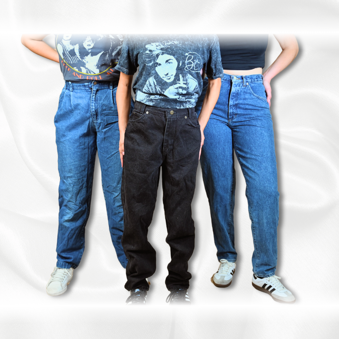 Our WHOLESALE VINTAGE 80s/90s WOMEN'S HIGH WAISTED DENIM JEANS MIX includes a variety of vintage jeans.