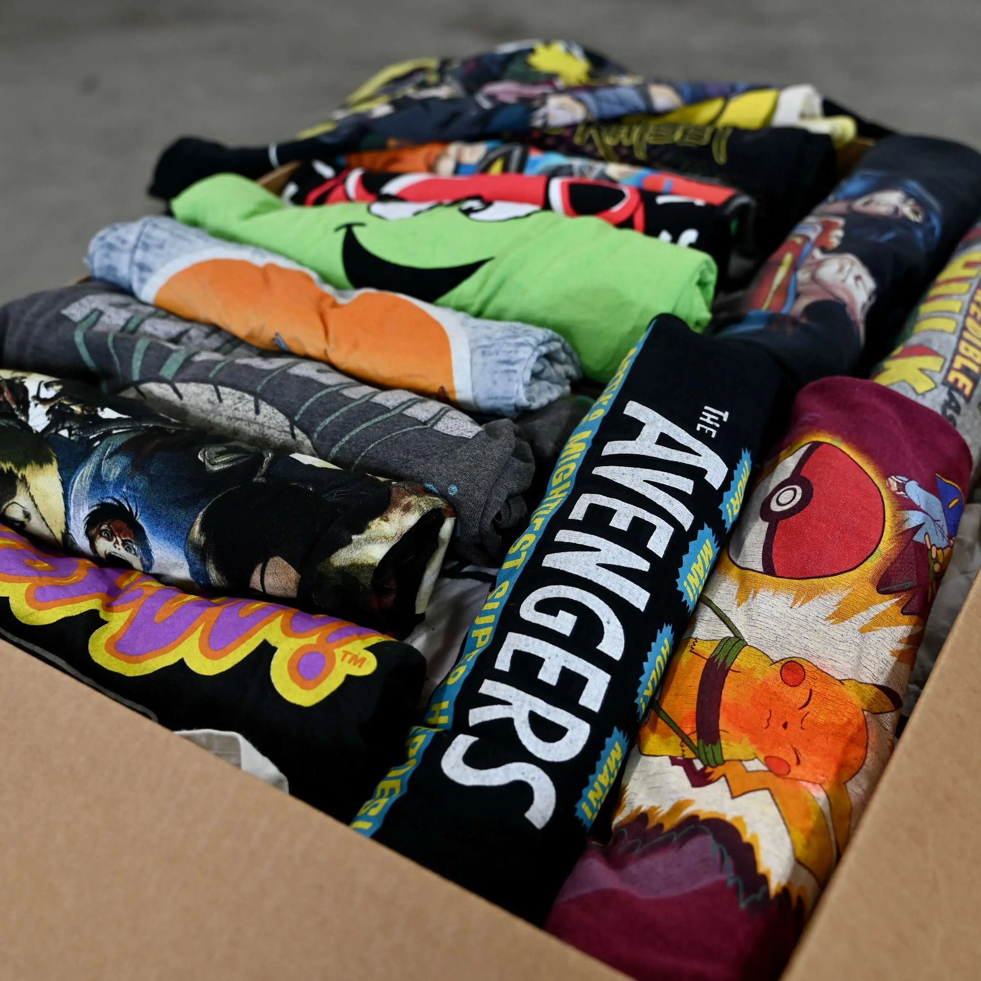 Our CARTOONS AND TV/MOVIE T-SHIRT MIX features t-shirts showcasing fan favorite cartoons and characters from iconic TV shows and films. Also offered in TV/Movie only.