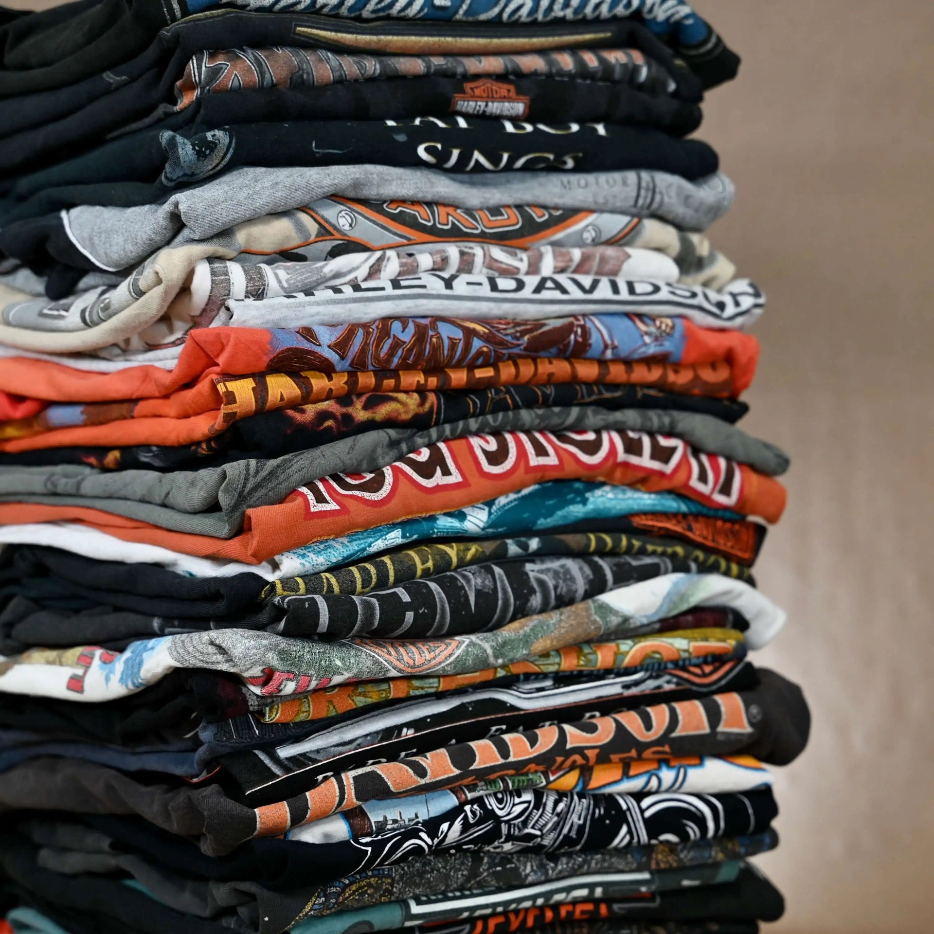 This bundle contains a greater amount of B Grade and distressed pieces than our other mixes. Many vintage resellers use Grade B pieces in this mix to rework Harley Davidson crop tops or bleach tie-dye tees to sell. Others prefer the aesthetic of a distressed biker look.