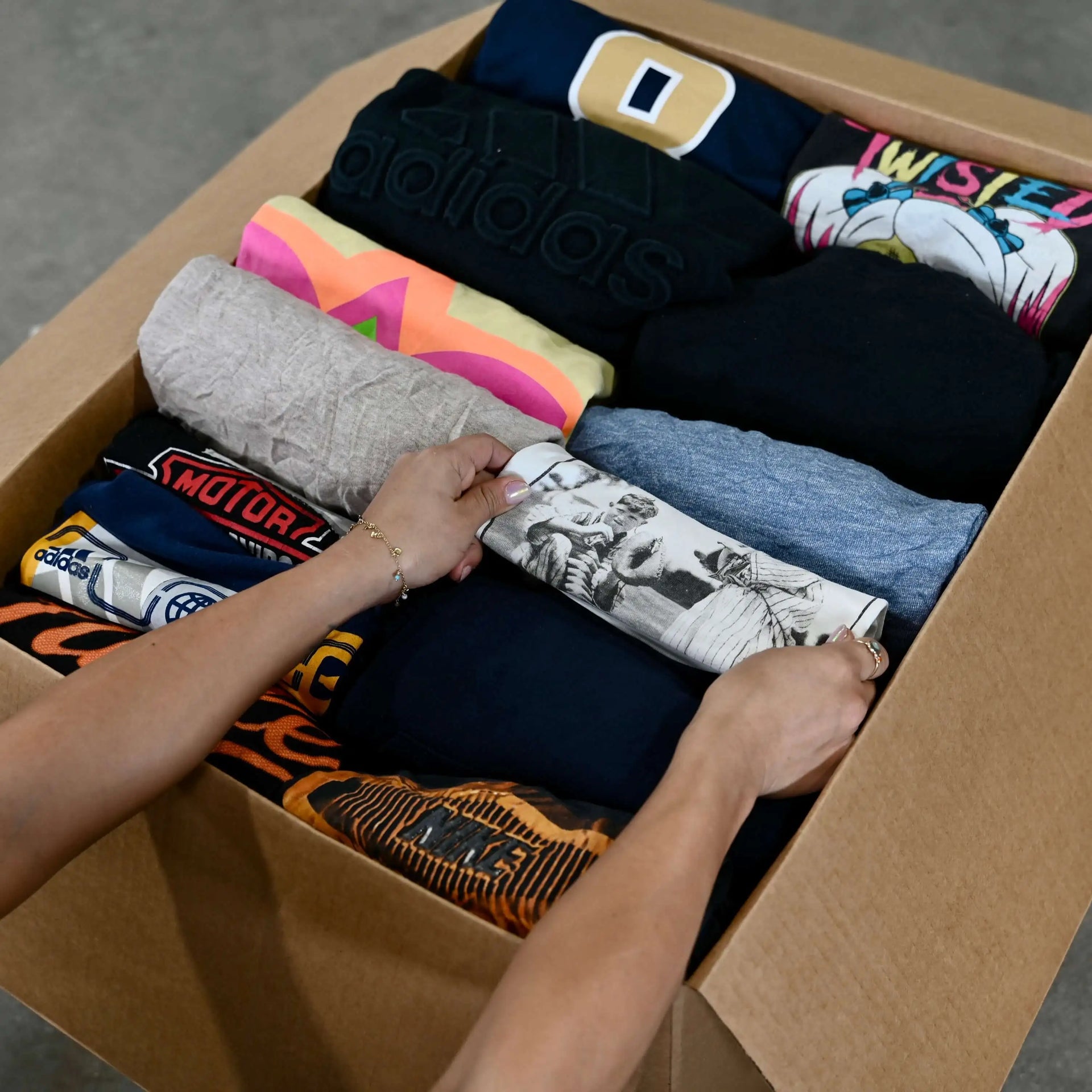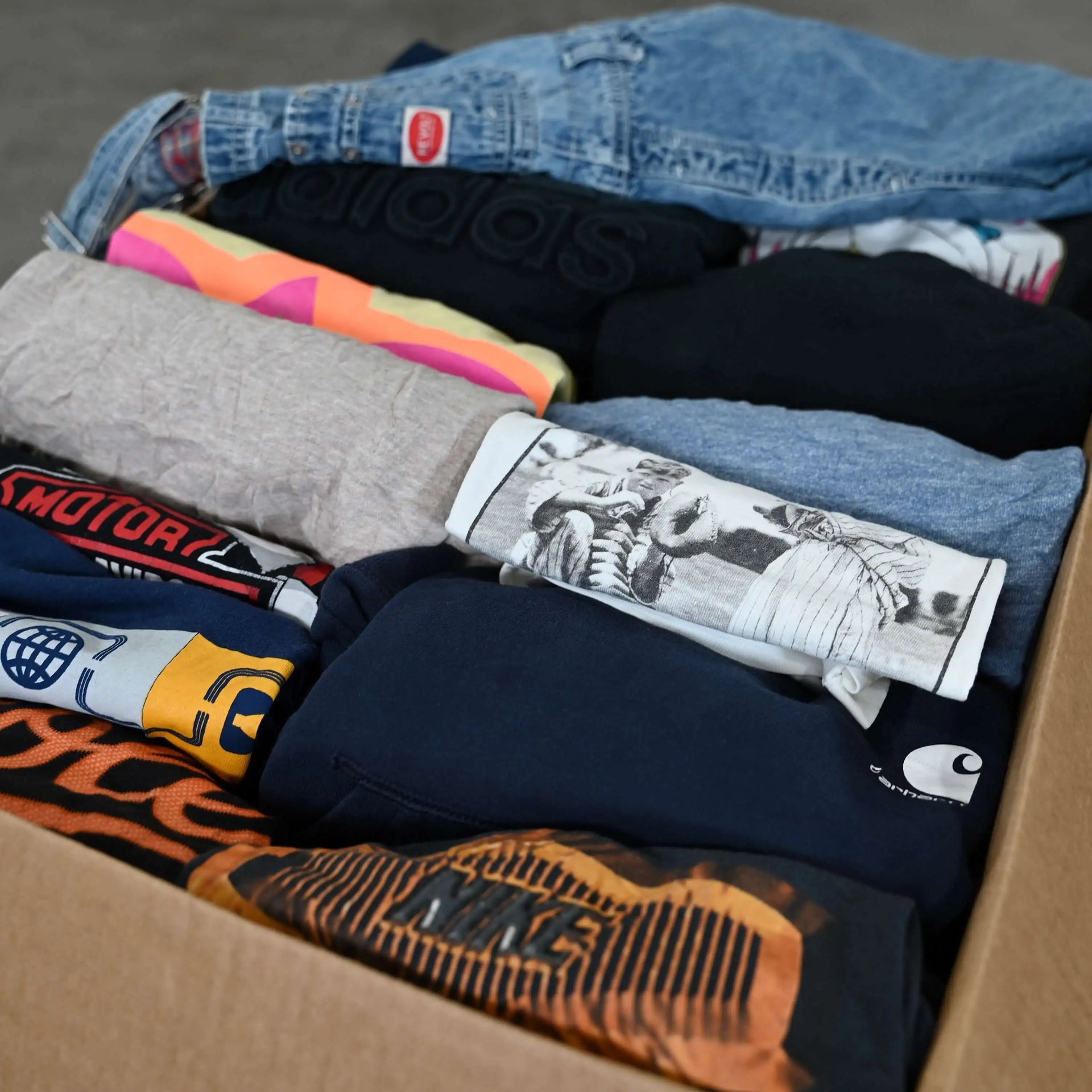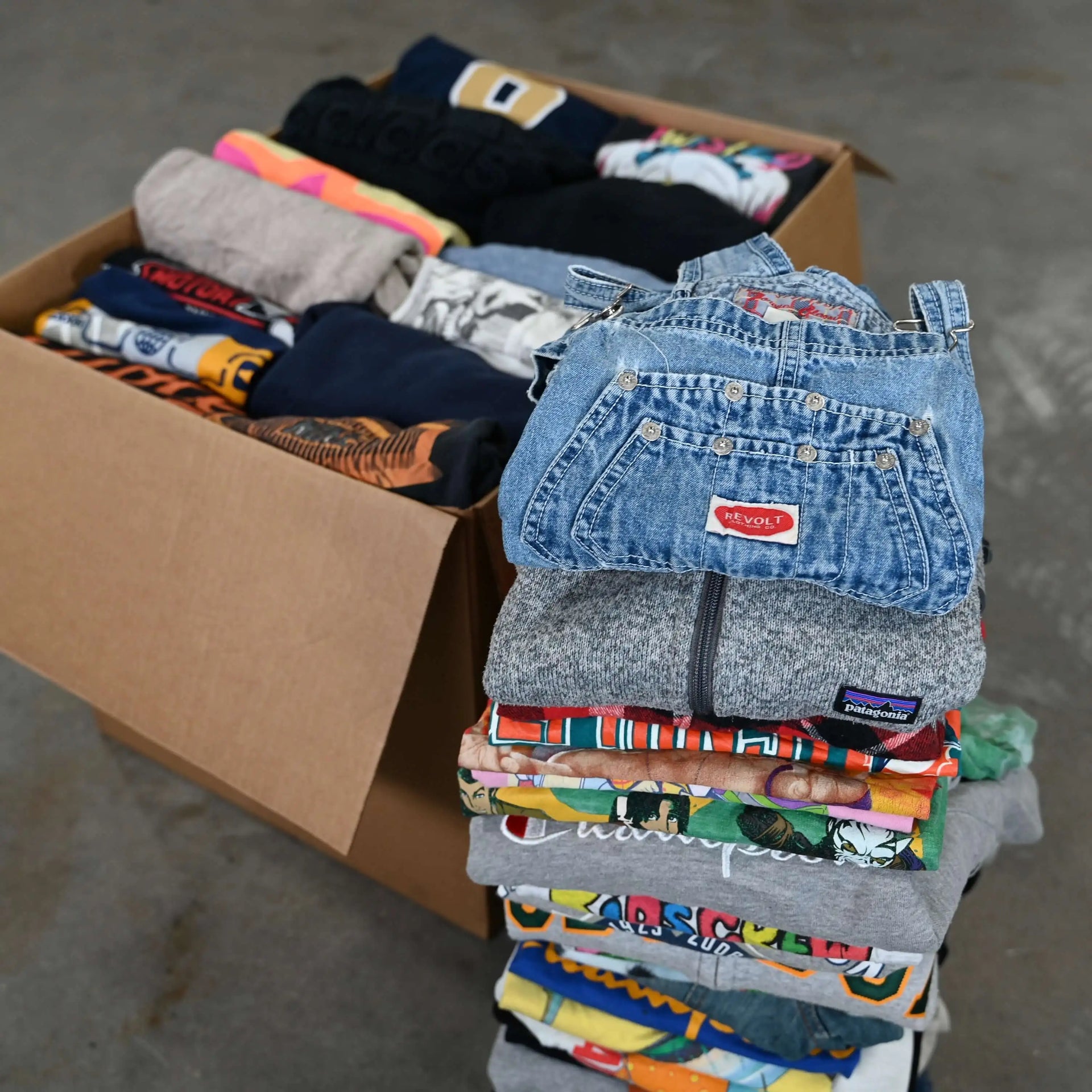 THE KIDS VINTAGE & MODERN MIX includes a variety of trendy styles in youth sizes, sold by weight.